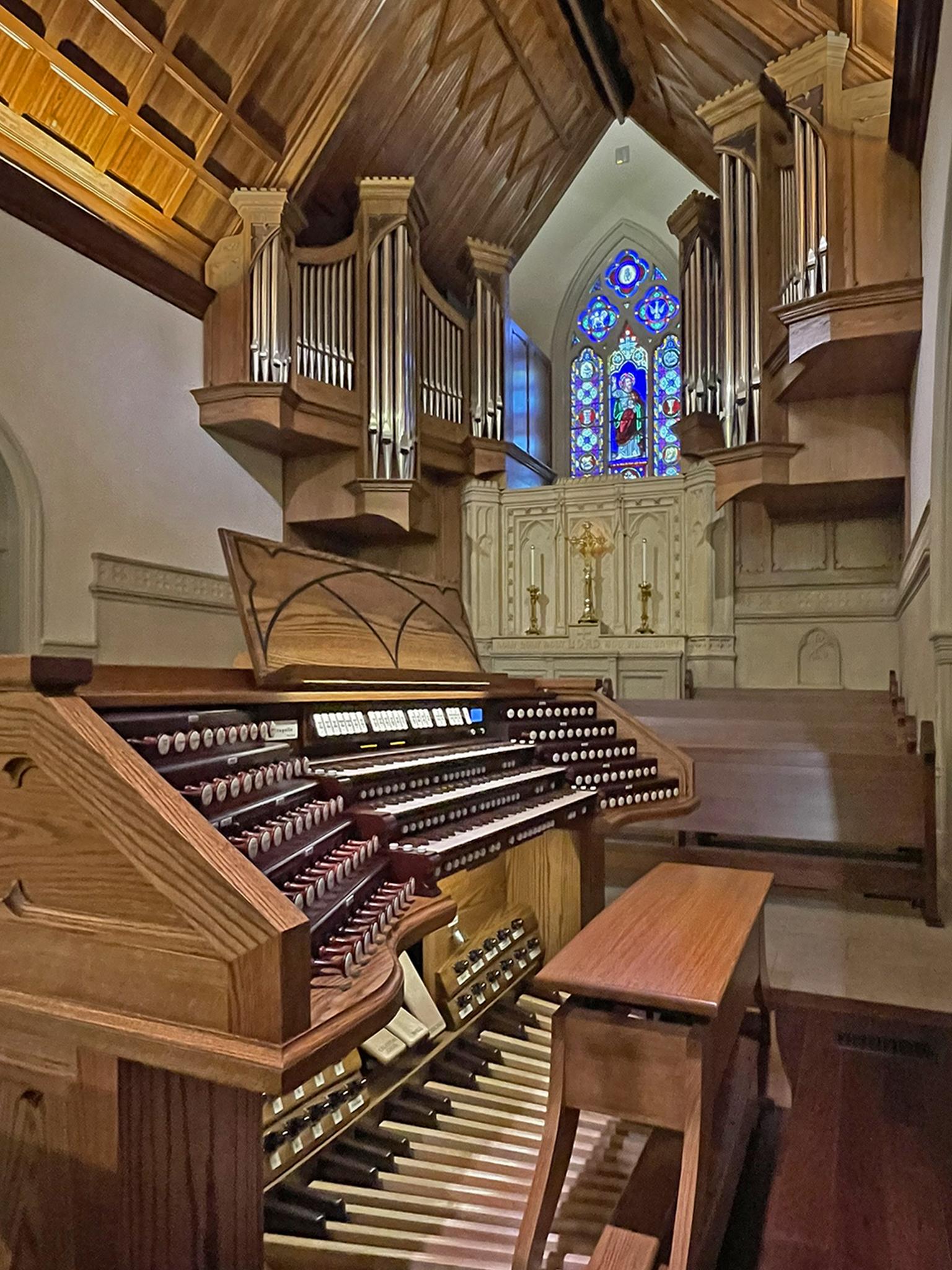 The four chancel divisions, the unenclosed Great and Pedal and the expressive Swell and Choir, provide the basis of both choral accompaniment and hymn singing. Placing full, expressive divisions behind the choir allows for the creation of truly effective and exciting choral literature.