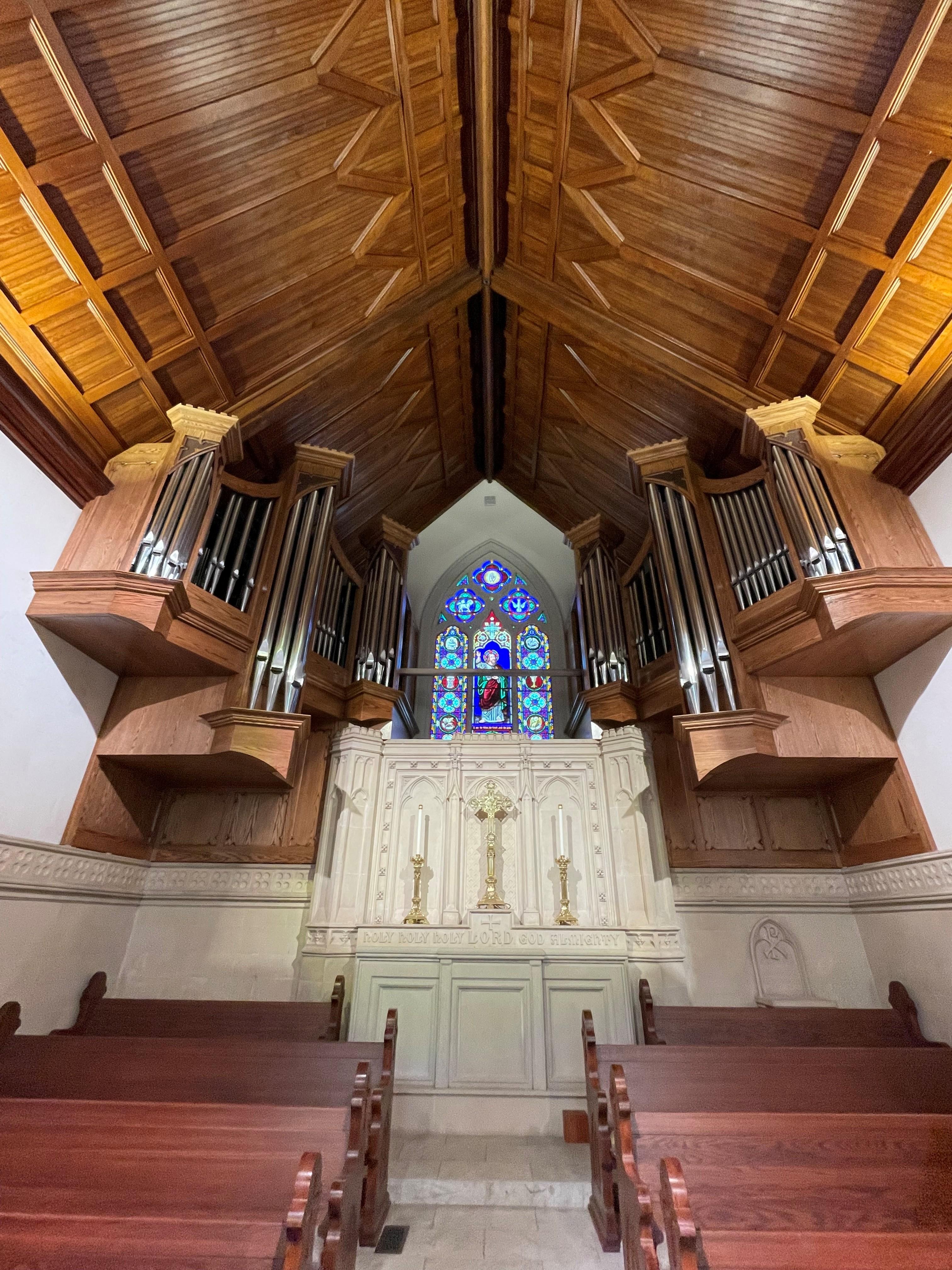 Finally, it was time to address the building of the pipe organ. The music program at Emmanuel benefits from an abundance of talent in the college town of Athens (not to mention, their pretty good football team), as this is the home of the University of Georgia. Peragallo Organ Company was tasked with creating an instrument that would thoroughly support the music program at the parish level and serve as a vehicle to provide for the larger college musical community. Beyond those important requirements, the organ pipework and cases needed to complement the architectural beauty of the room, while simultaneously feeling as though they had always existed.
